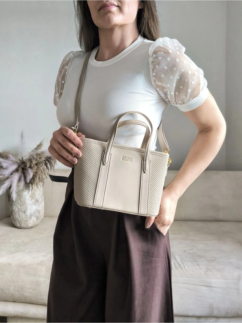 Kabelka do ruky nebo jako crossbody s popruhem.