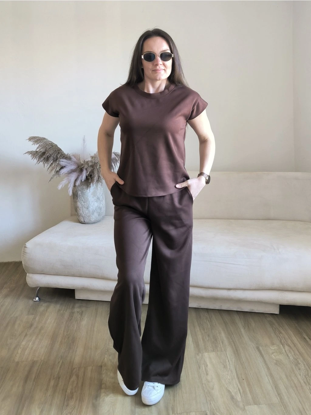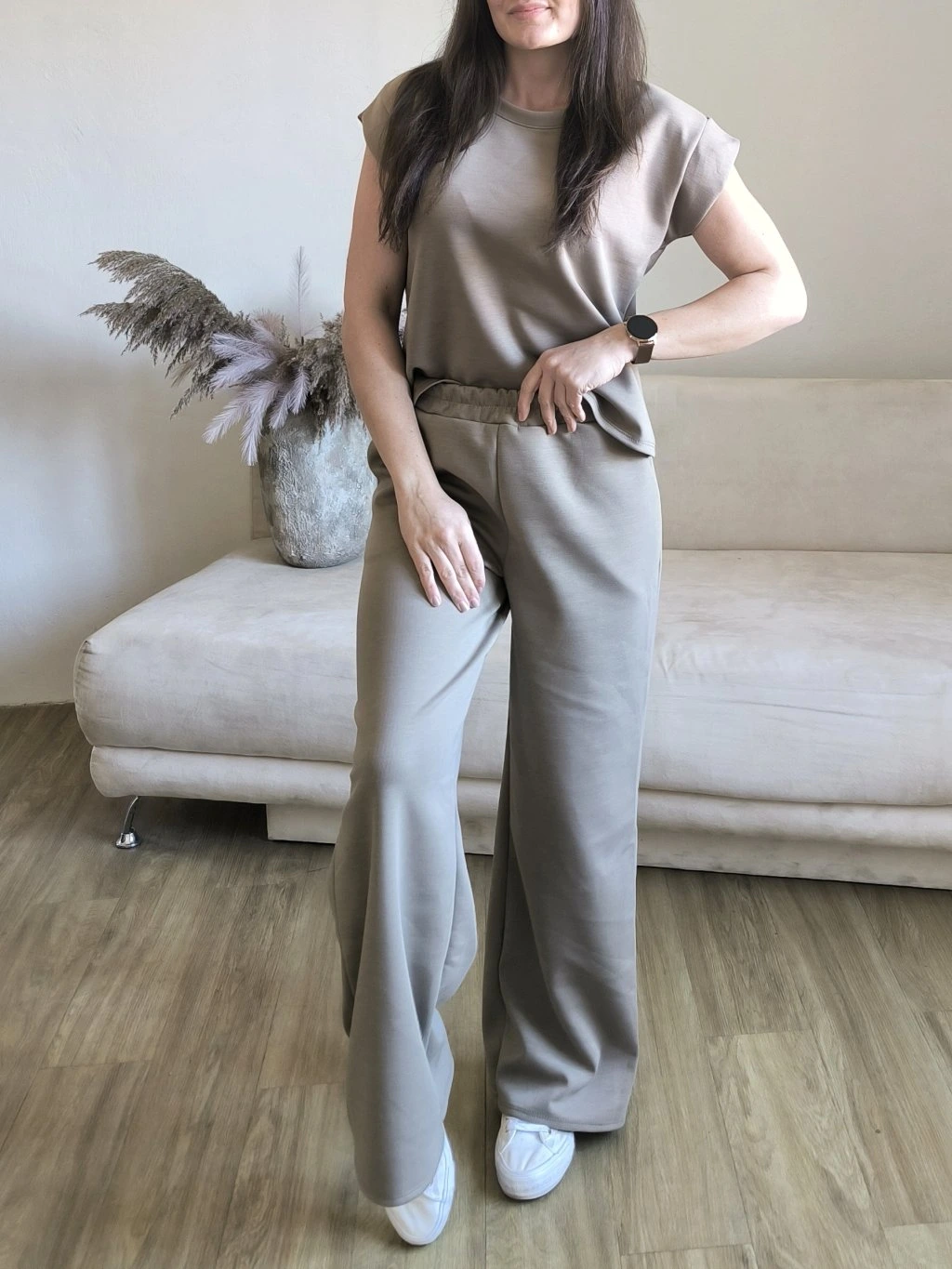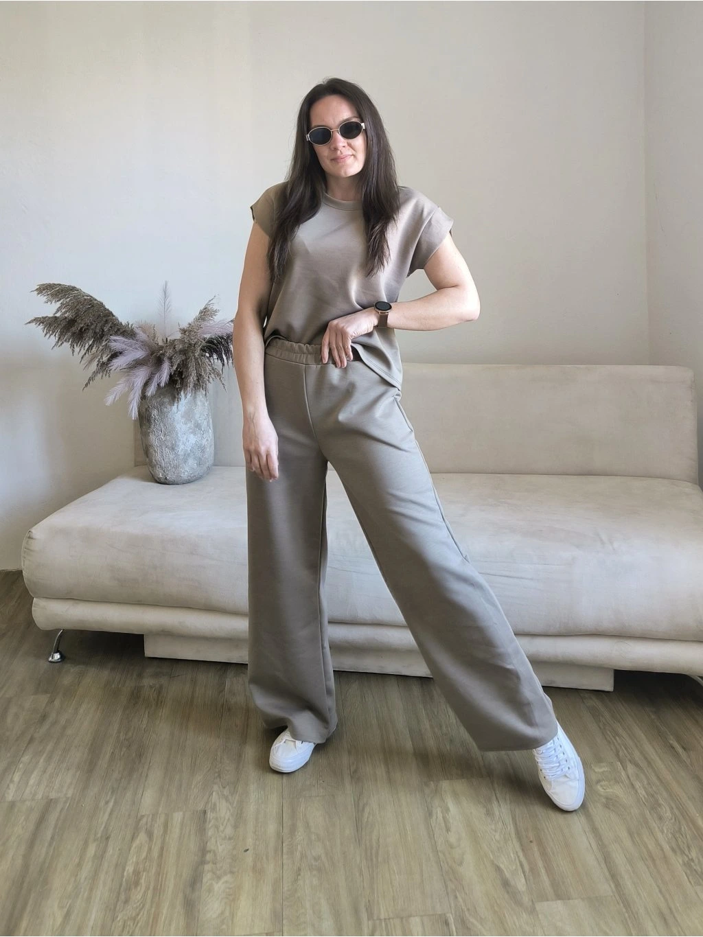 Tepláky mají v pase gumu, po stranách kapsy, vzadu jsou hladké.