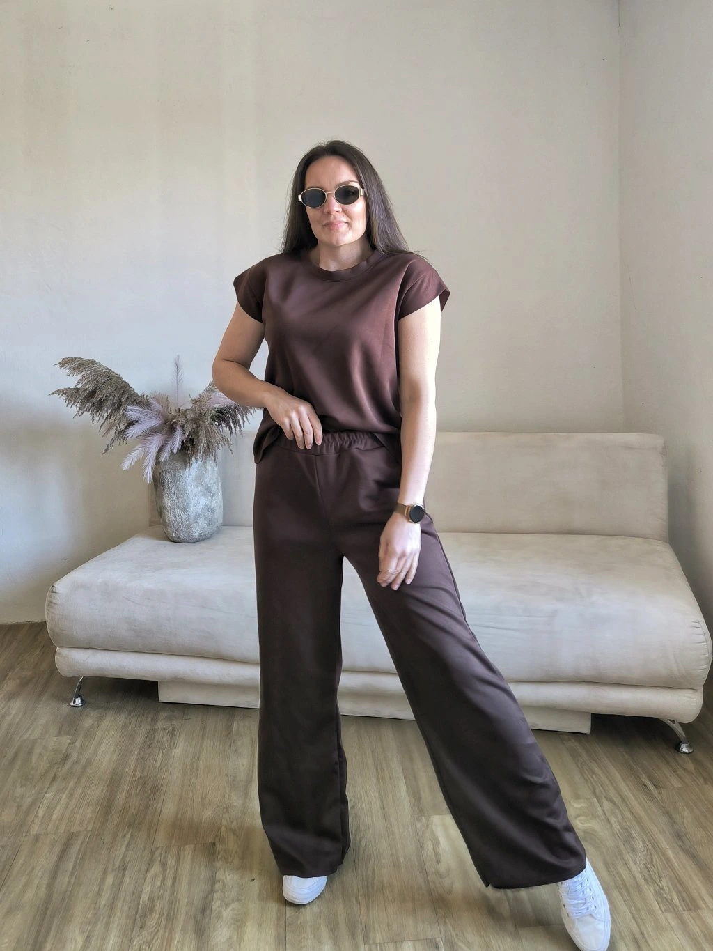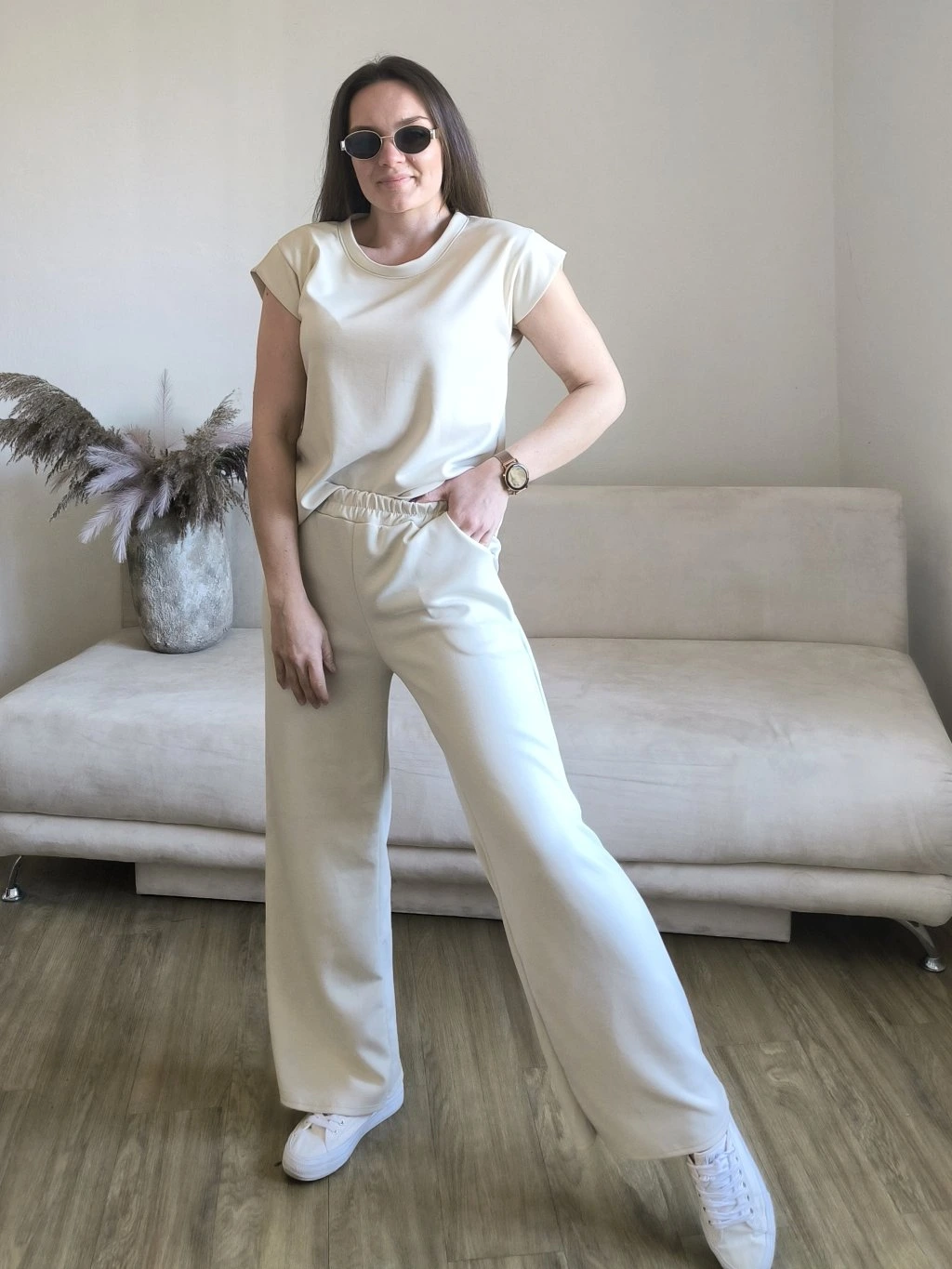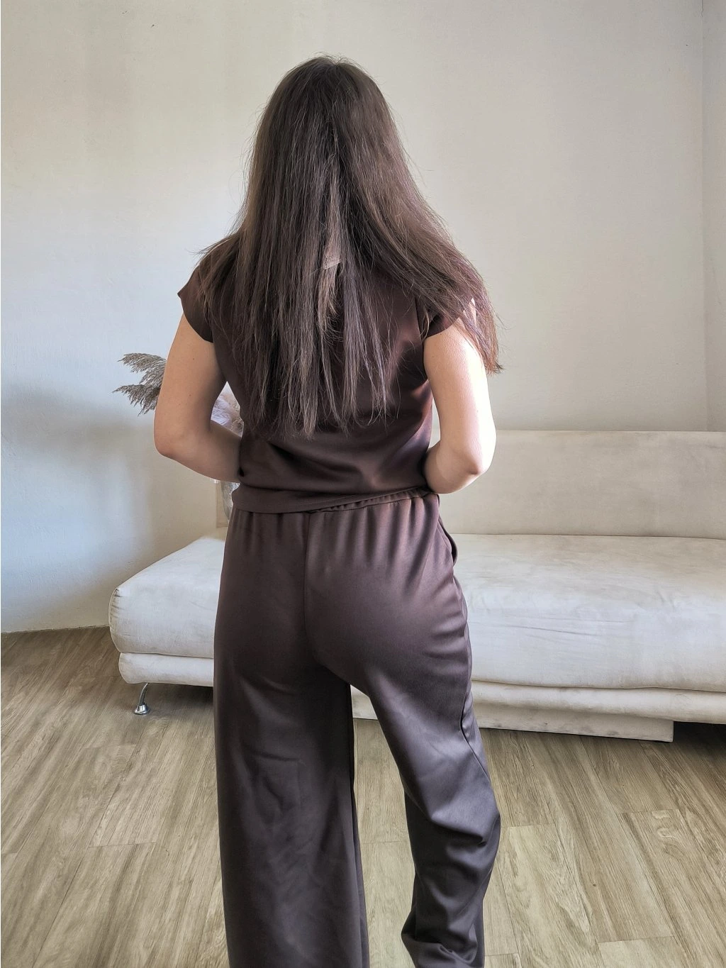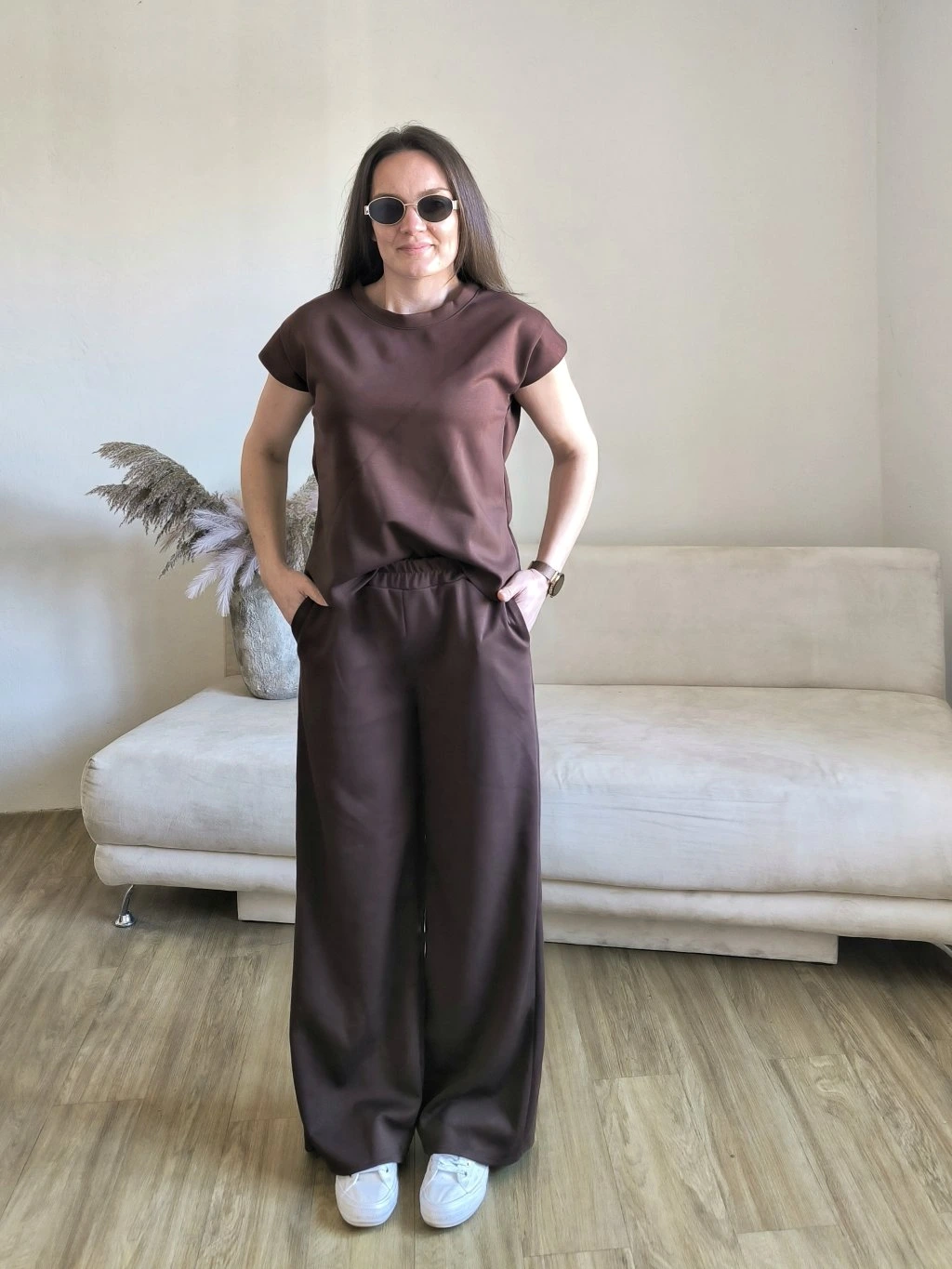 Tepláky mají v pase gumu, po stranách kapsy, vzadu jsou hladké.