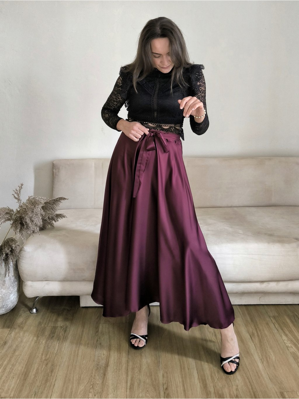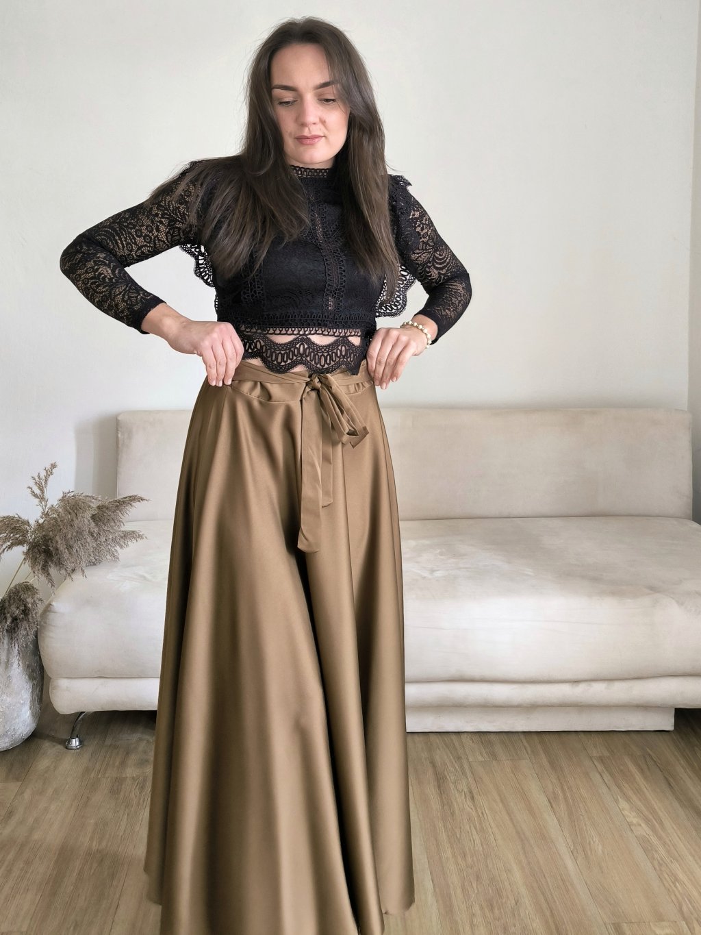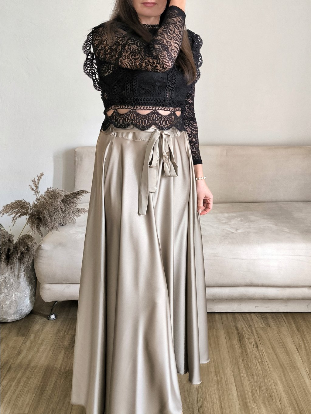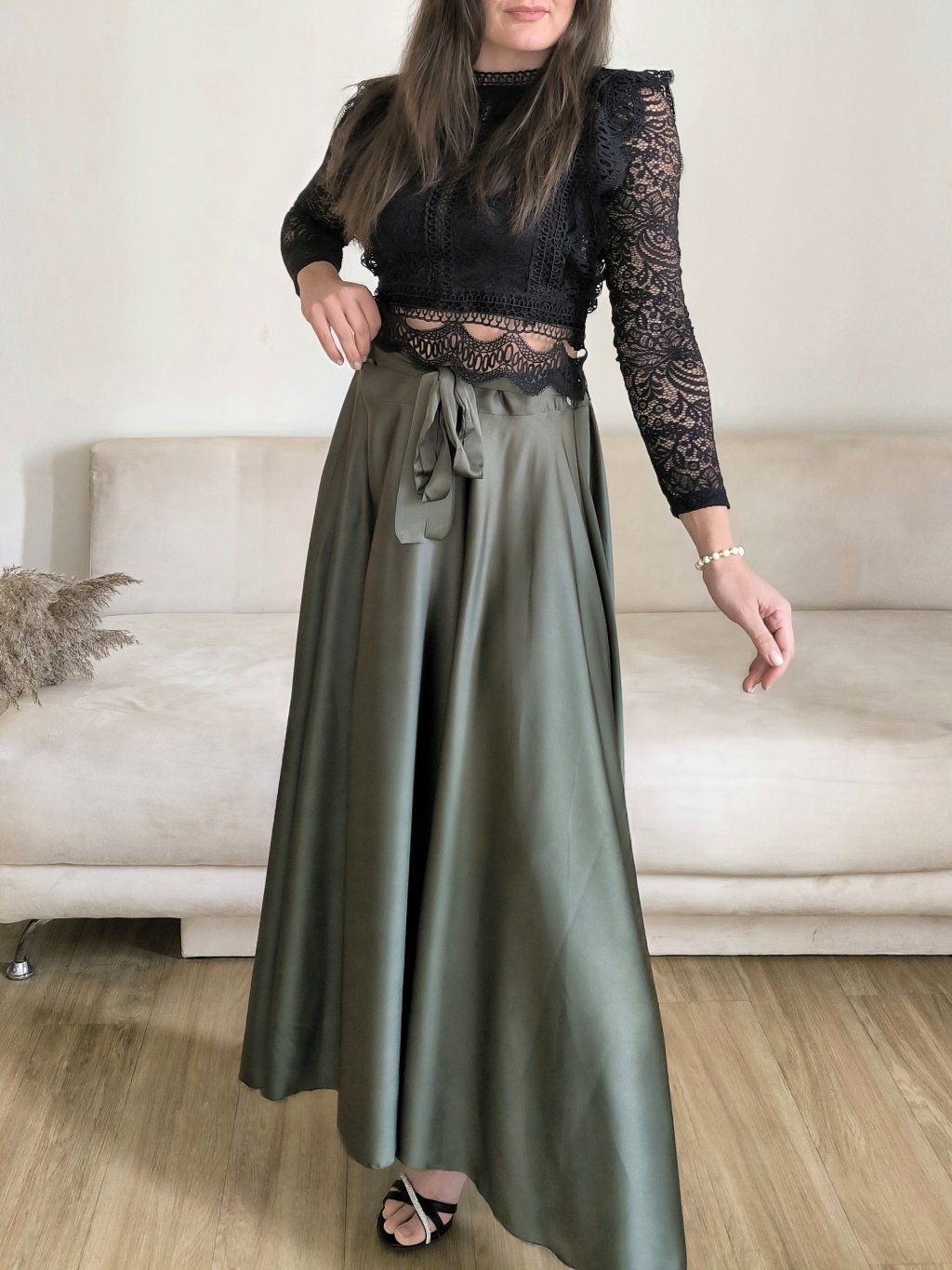 Sukně pruží v pase, lze utáhnout páskem. Pásek lze zavázat dopředu i dozadu. Využiješ po celý rok k podpatkům i teniskám.