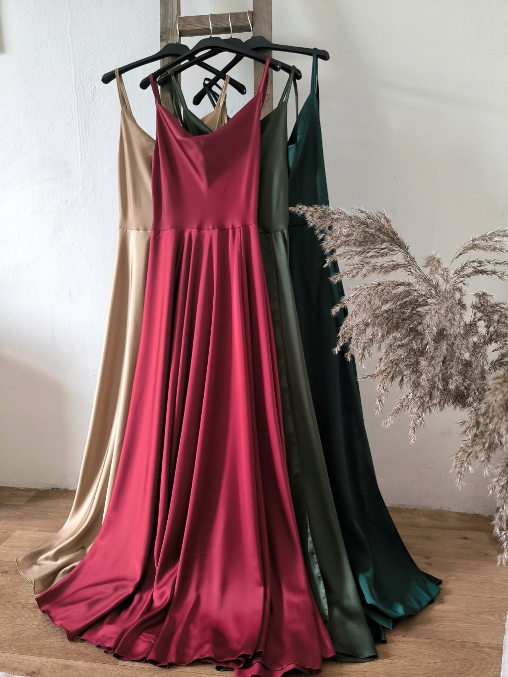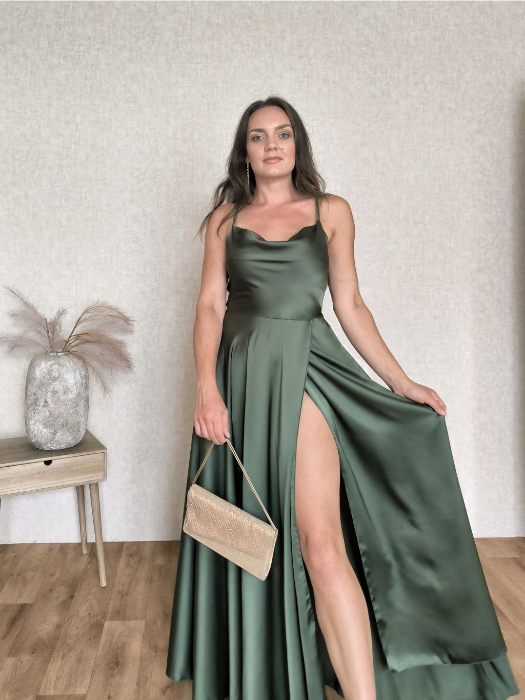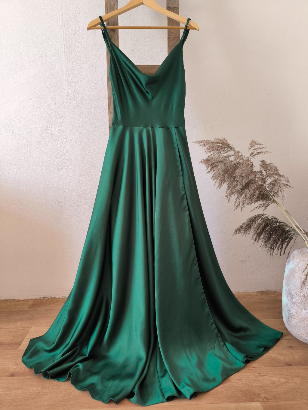 Šaty jsou elastické v oblasti prsou a pasu, na prsou se zdvojenou látkou.Šaty jsou lehké,vzdušné. Od pasu dolů jsou šaty volné s rozparkem.