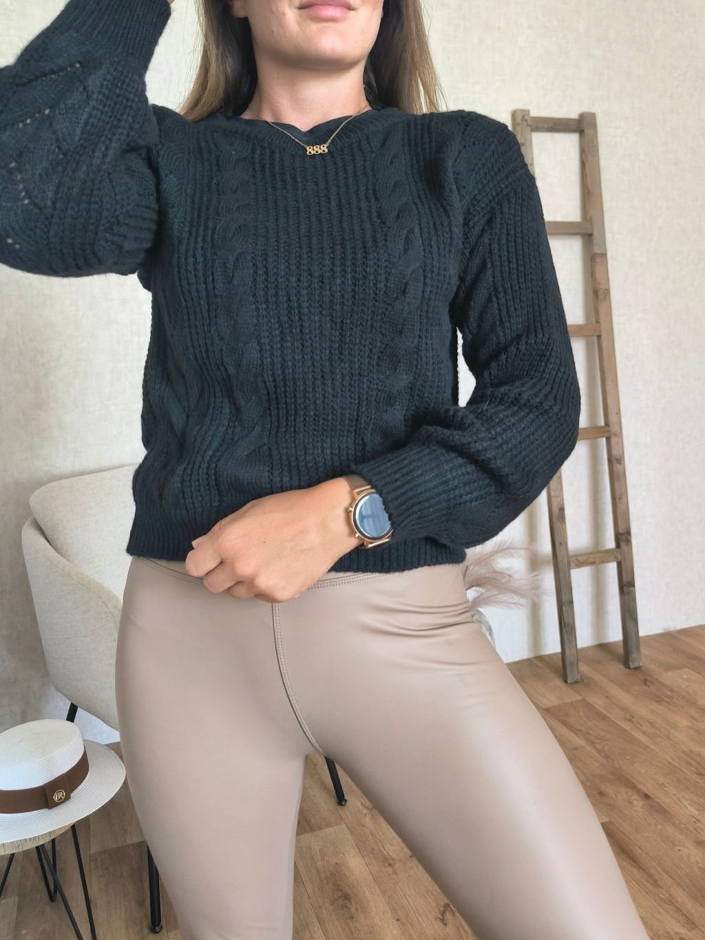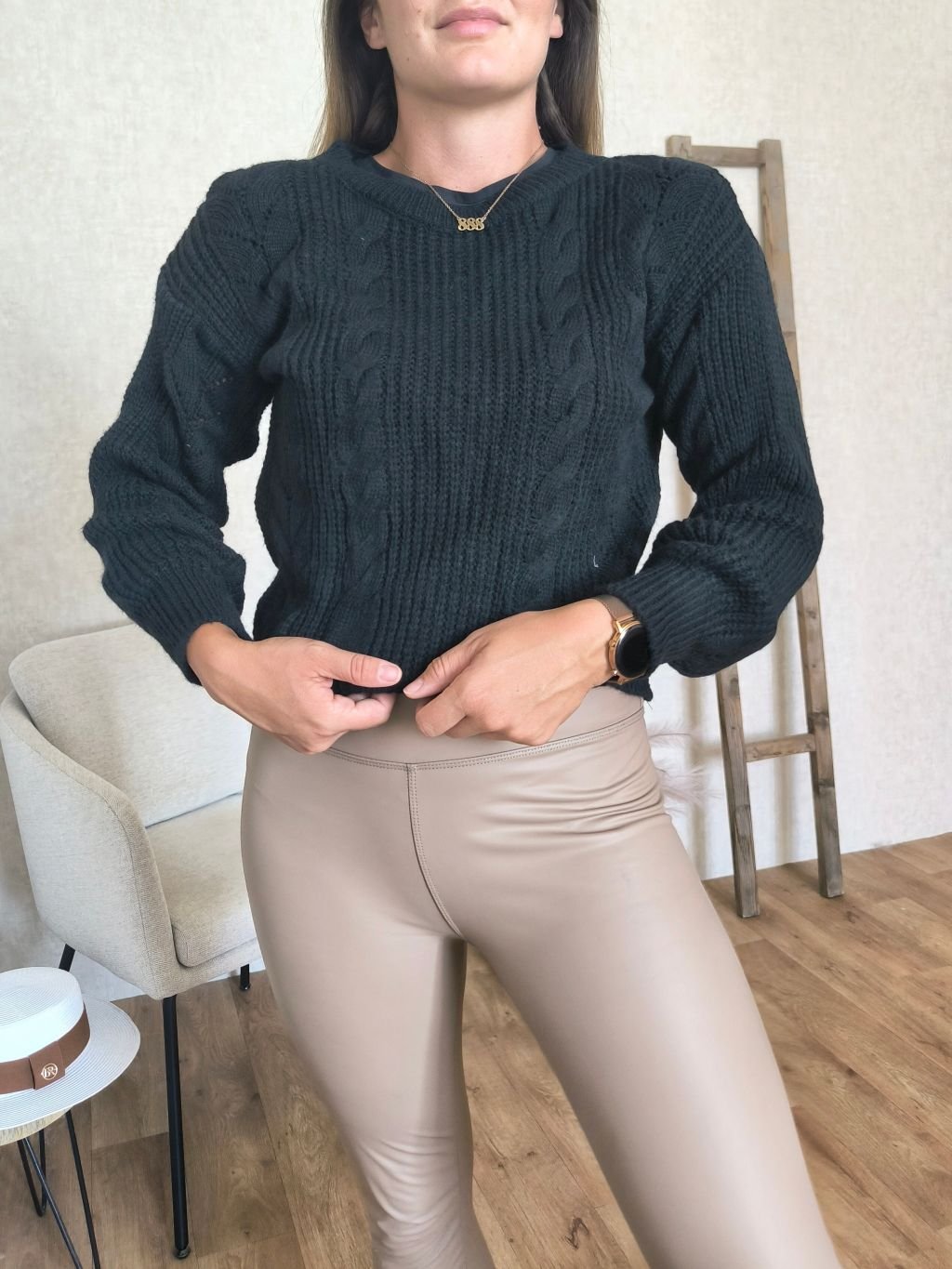 Svetr s pleteným vzorem sedí unisize na postavu XS-M