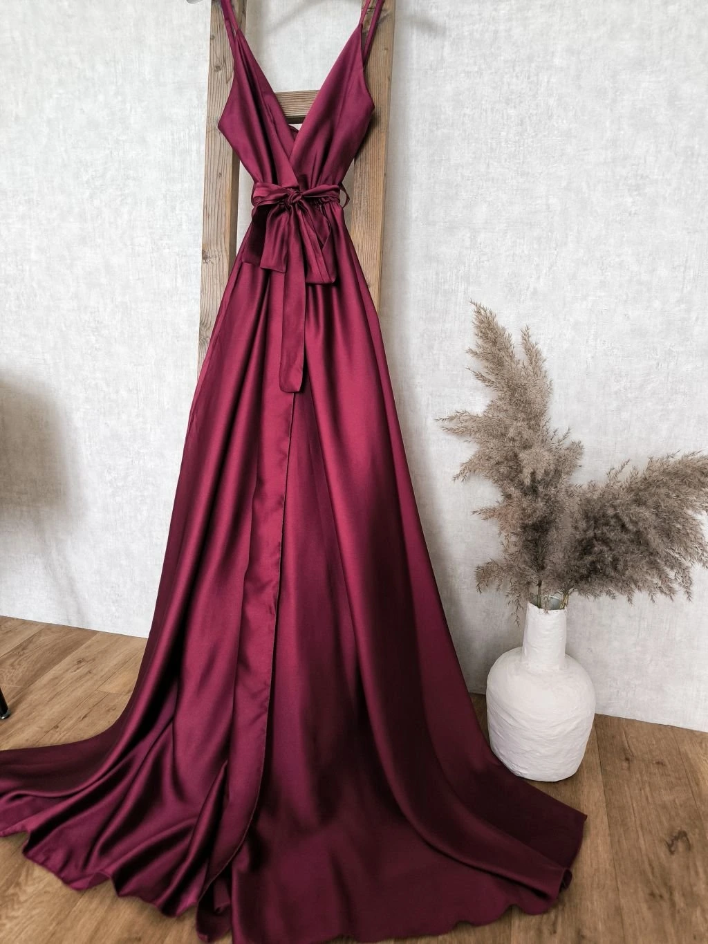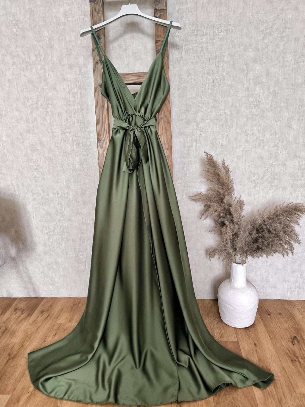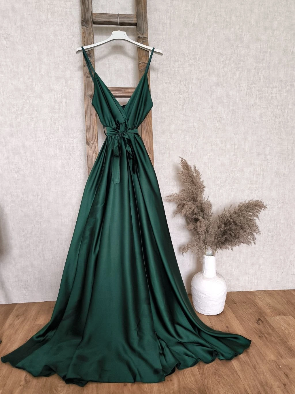 Materiál šatů je hladký, lehký, lesklý. Šaty mají v pase gumičku, pruží. Ramínka jsou nastavitelná.
