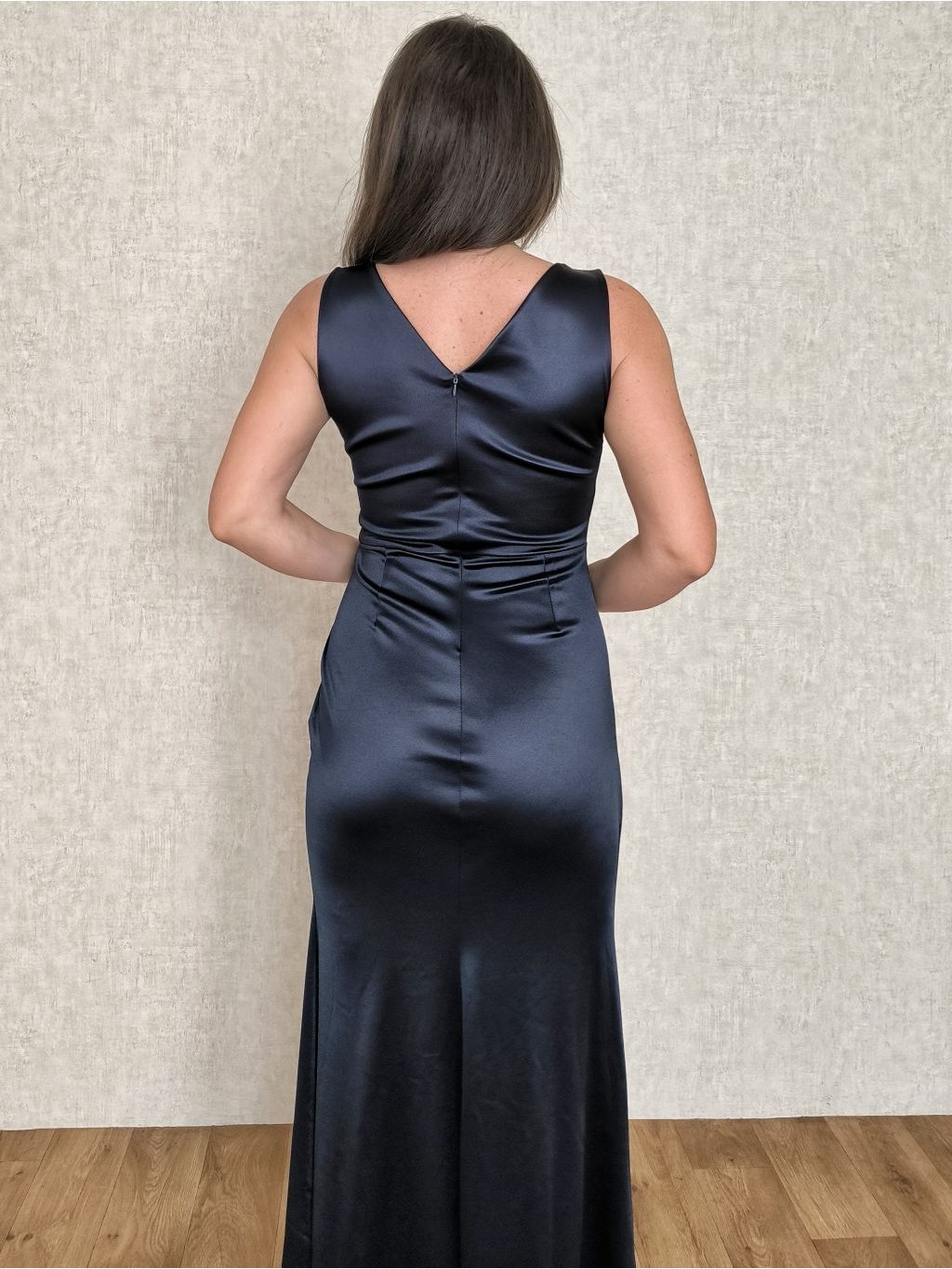 Materiál je silnější lesklá látka. Elastické, přizpůsobí se postavě. Krásně zvýrazní siluetu díky řasení v pase.