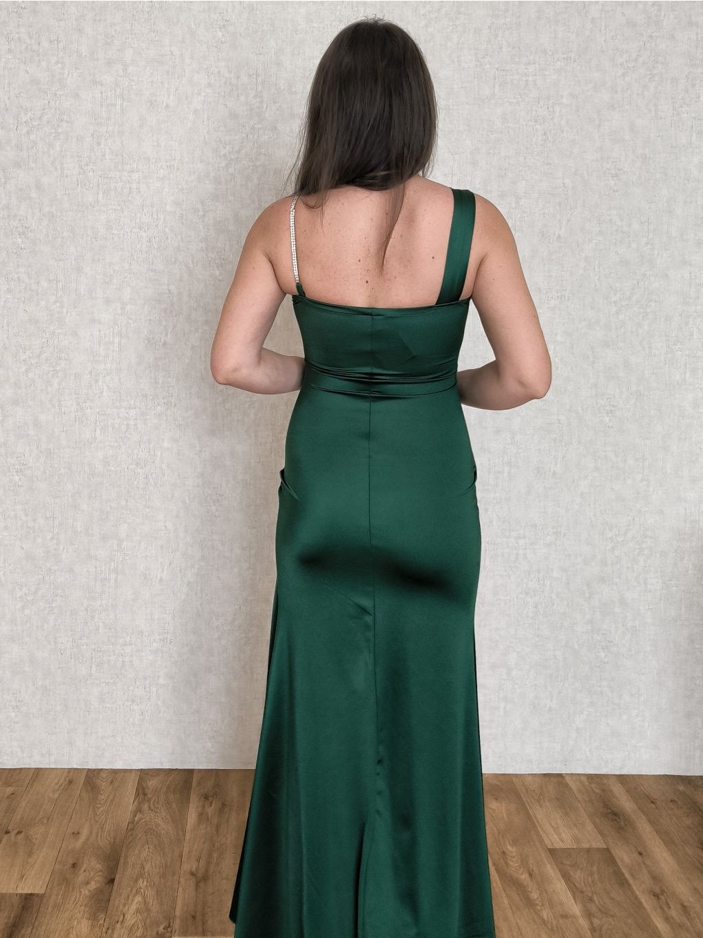 Materiál je lesklý, pružný. Krásně zvýrazní siluetu. Jedno ramínko z kamínkového pásku.